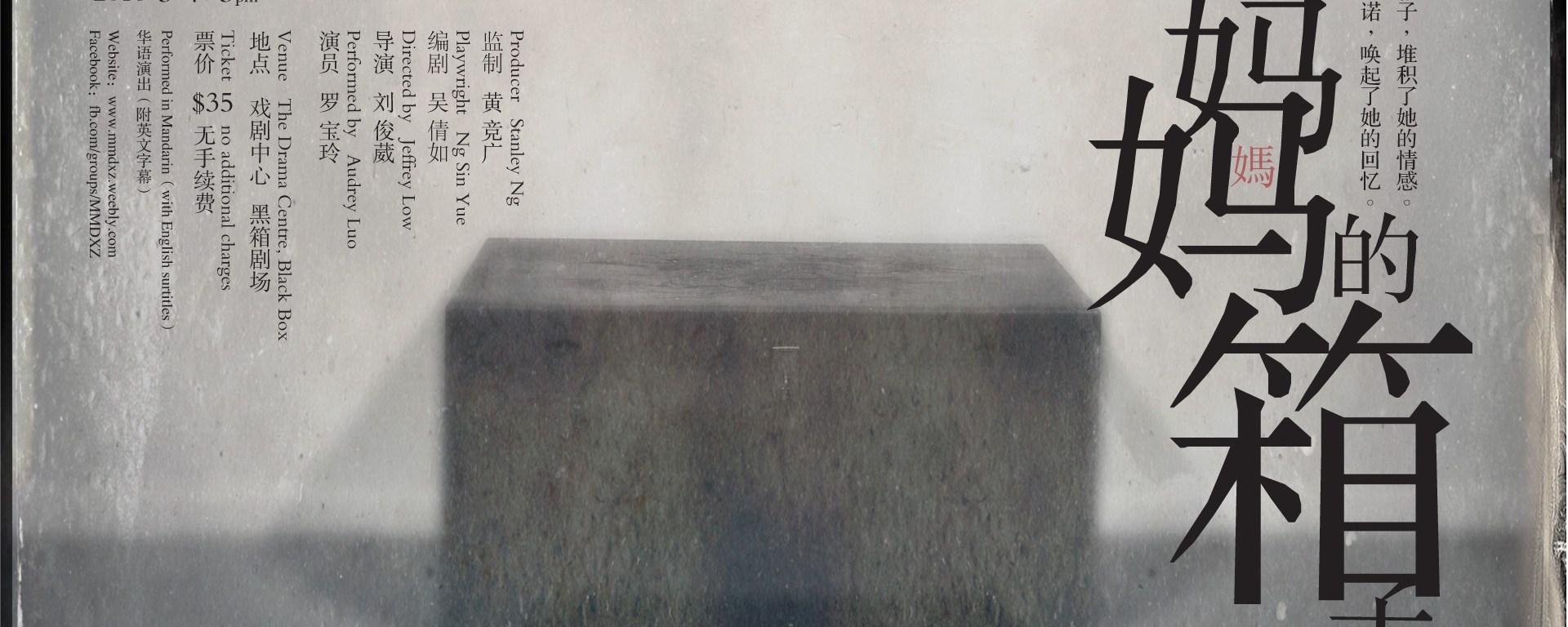 My Mother’s Chest is the debut production by Stanley Ng and starring Audrey Luo. Written by Ng Sin Yue, this hefty monologue follows one woman as she reminisces over her mother’s chest (an actual box, not her torso) and explores her past of love and loss, and the relationship with her mother which made her the person she is today.