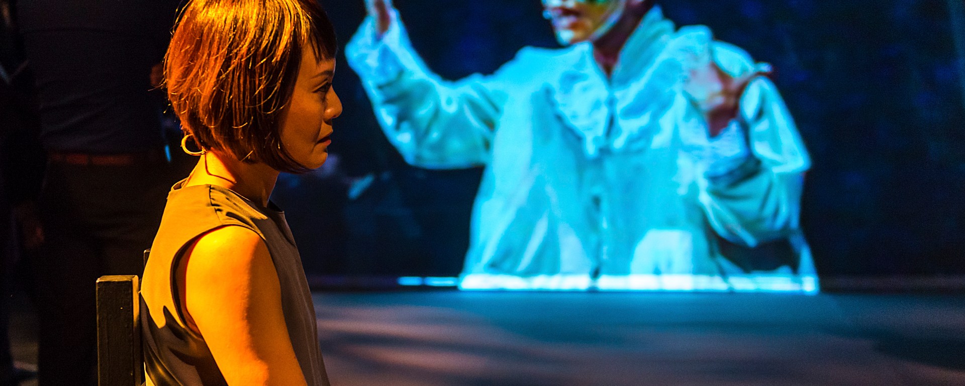 First presented at the 2015 M1 Singapore Fringe Festival, With/Out features actress Janice Koh as she performs the original Paddy Chew monologue. There are no tricks or illusions here – Koh isn’t dressed as Paddy, but is simply herself, using only her facial expressions , body language and voice to convey the same emotions and feelings from Paddy all those years ago. Breaking new ground for theatre, audience members are given headphones and can toggle between three audio channels during the performance, in which they are given free reign to wander around the space, because Singapore is a democratic country so we are given choices as to what to do. Lining up with the video feed on screens surrounding her, one channel presents the original Paddy Chew monologue from archival footage, another Janice Koh’s voice as she performs live, and the last one a combination of the two, whose screen displays neither Paddy nor Janice, but simply scenes and photos relating to the content of the monologue.