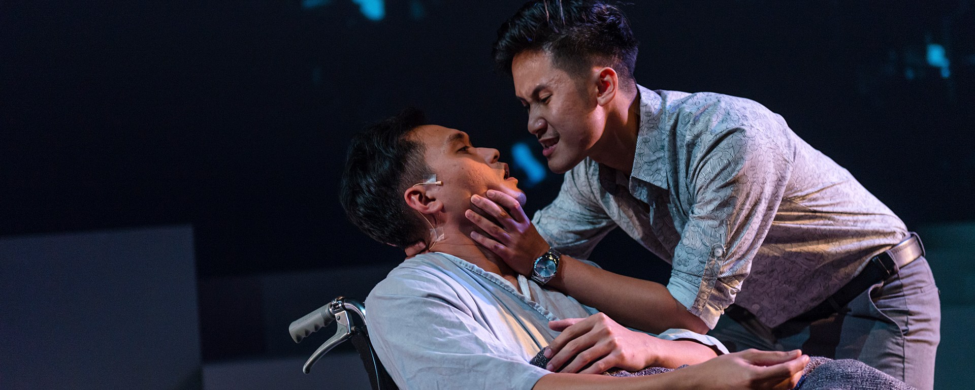 Equally dark is the scene between Fir and Hirzi, in a sequence that utilises The Necessary Stage’s signature brand of magic realism. While Hadi (Hirzi) begs for the vegetative and wheelchair bound Azman (Fir) to give some sign of life, Azman stands up and walks around the stage, representing his subconscious mind, and the two engage in a conversation that breaks the boundaries of reality, expressing their grief, pain and regret. Hirzi in particular, played his role to devastating perfection, bringing out his character’s grief arc very well, and the nuances that turned it from a good performance into a great performance, all the way up to the tragic ending.