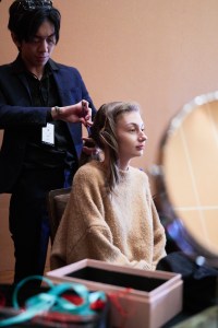 Behind the scenes as models prepare to walk the purple carpet