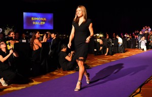 World No. 1 Simona Halep walks down the purple carpet at the 2017 WTA Finals Gala Dinner