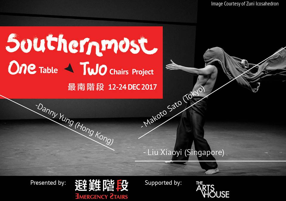 The final triple bill of the Southernmost: One Table Two Chairs Project plays at the Arts House Blue Room from 22nd to 23rd December, while the Festival Debrief takes place on 24th December. Tickets available from Peatix.