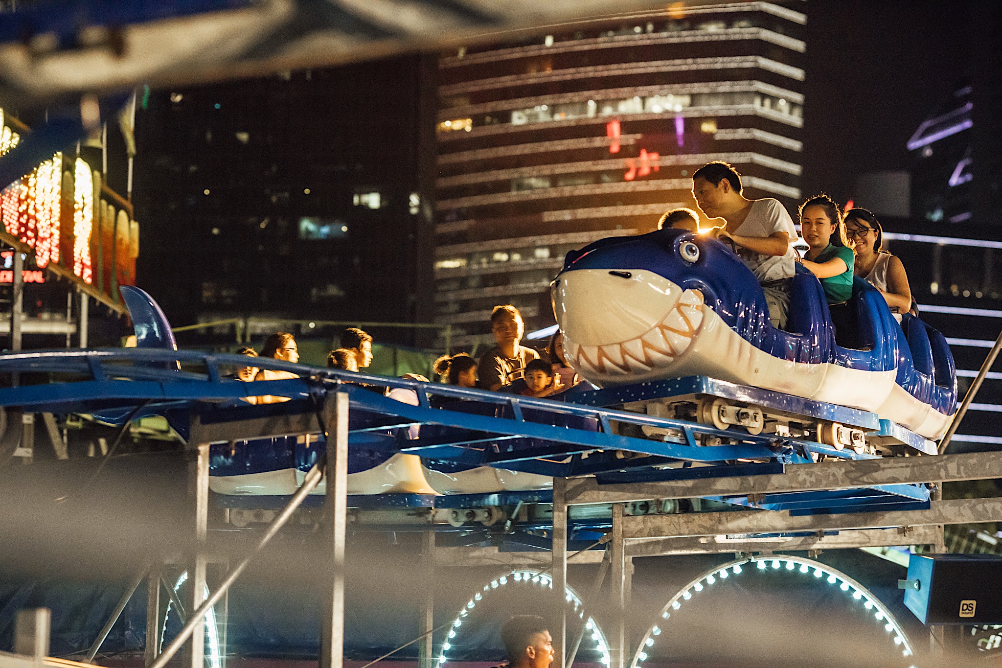 Carnival-goers on the Shark Coaster. Image courtesy of Prudential Marina Bay Carnival