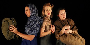 In between each woman’s time specific scenes, Displaced at times collapses history and breaks naturalism to bring all three women together within the theatrical space, often a cue to expect some of the most beautiful movement work we’ve seen in a while. Each choreographed step, turn and pirouette feels like a burst of pure emotion, expressing the full extent of their thoughts where words would never be enough. And even when they do speak, the accents are handled with aplomb, wholly believable and played for realism. Although equipped only with a single rack of costumes and a few wheeled wooden frames and ‘boxes’, Carla Orosz’s minimalist set works to Displaced’s advantage, often requiring only our imaginations and the stellar acting to see the scene formed in our mind’s eye, while scored to an evocative original soundtrack by Jason Cullimore.