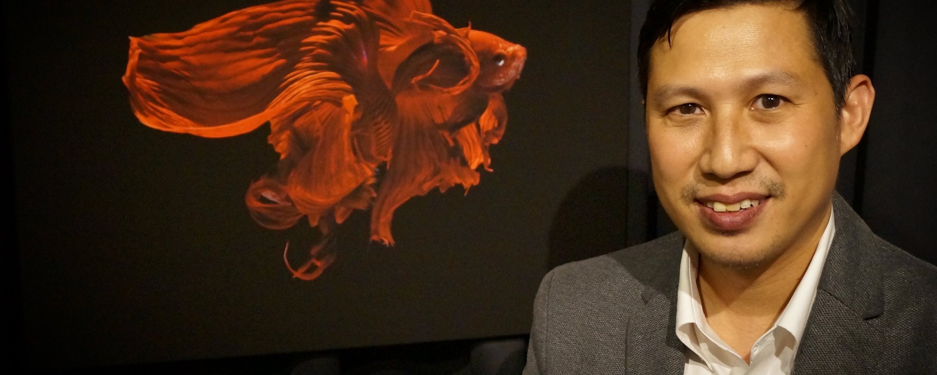 Beauty of Bettas marks Angkatavanich’s first solo exhibition in Singapore, and opened last weekend in conjunction with the Sun Yat Sen Nanyang Memorial Hall’s Dragonboat Festival celebrations, in line with a number of other fish-themed activities and displays. By day a commercial photographer, Visarute began shooting bettas and other fish around seven years ago, when he became enamoured with their spectrum of colours and the way their tails swished and flicked in the water.