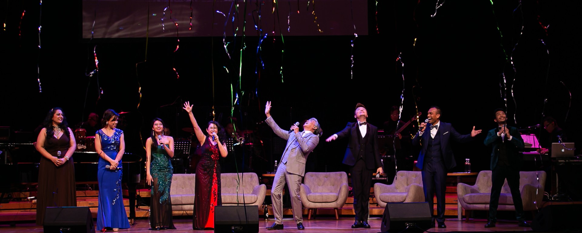 Despite the concert hall’s size, careful thought has gone into this production to ensure it always felt intimate, with the distance from the stage narrowed from the way the performers seated on comfortable couches in between acts, never leaving the stage. While other performers were onstage, it was evident that they all looked upon each other with admiration and support for the skill and ability displayed by each one, smiles emerging from their faces at every turn.