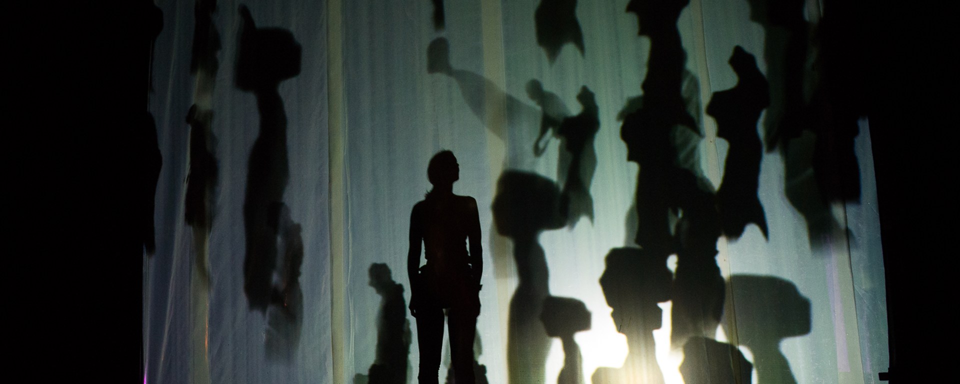 In the final, provocative scene, an army of silhouettes of what feel like ghosts appears on a plastic sheet, and one is reminded of wayang kulit style shadow puppetry. Hearing an explosion, water is then splashed onto the sheet while red light is projected onto it, looking as if blood is being spilled all over, leaving only a single survivor. Yet even in life, this single survivor cannot escape the horrors of war, literally dragged down by the dead ‘souls’ into the depths of hell. Eventually managing to escape, she crawls to the front of the scene, scattering gravel and other reminders of war torn items to resemble a fallout zone, following an explosion (displayed on the plastic screen) She is visibly traumatised, and explaining her story, puts everything into perspective.