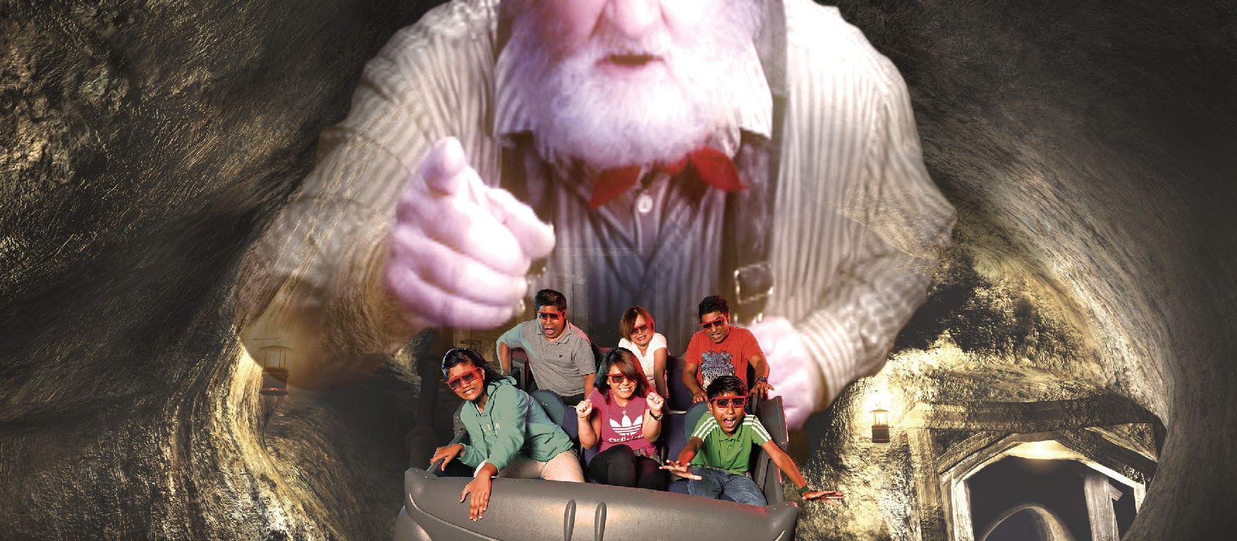 abandoned tracks, but look out for some of the spookier elements like bats and encounters with fiery pits of the sacred grounds hidden within. As a 4D Adventure, you’ll also be sure to enjoy the multi-sensory effects like fog, smoke, lighting, wind, leg-tickler and more to make this physical theatre experience one to remember.