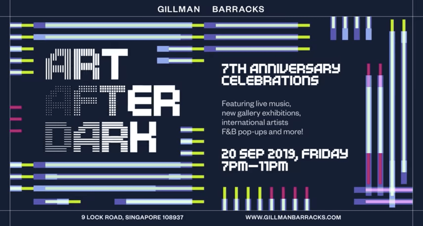 Art After Dark X Gillman Barracks 7th Anniversary Celebrations takes place on 20th September 2019 from 7pm till late. Admission is free.