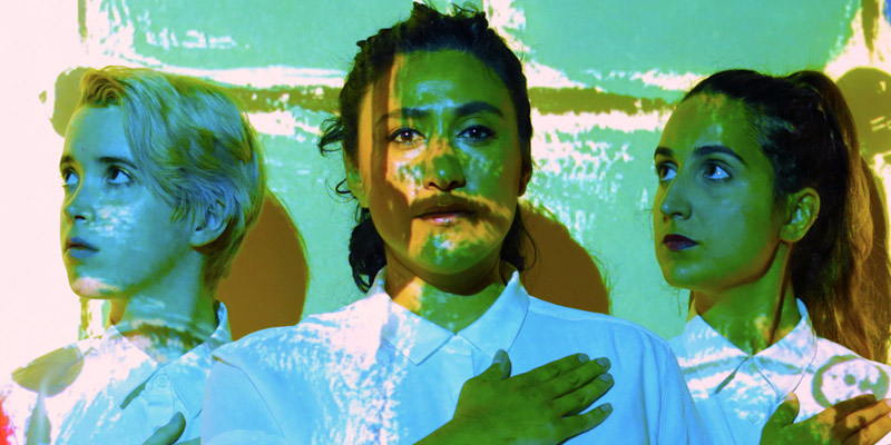 Sarah: Having our entire team be comprised of women wasn’t our original intent- the first iteration of No Place was actually created with our company member Akhshay Gandhi, but when he moved back home to India we were left with an all-female team. Andrea and I did decide fairly early on that all the actors should be women. It was important to us that the only people we see in this future world are women, not because it’s an amazing matriarchal society (it’s not), but because we’re women, and we want to tell stories that reflect our own experiences and focus on complex, driven women. Personally, I do believe the future is female, so that’s not not a part of it!