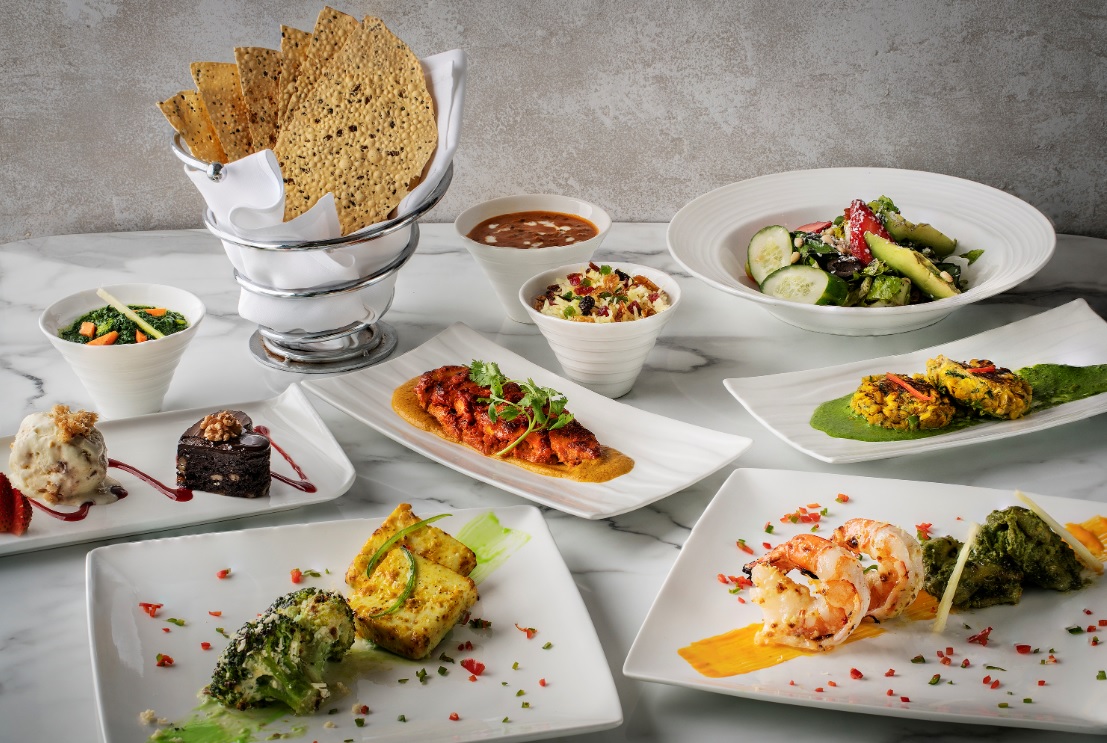 Ease into the evening with a Cabbage Consommé to whet appetites before savouring the Patrani Fish, a Parsi dish which features a delicious blending of Persian and Indian cuisines. In it, golden pomfret fillets with Chef’s special marinade are steamed in banana leaves to infuse each parcel perfectly with a blend of spices and nuanced flavours. Next, diners will savour a chargrilled pistachio-rubbed Lamb Chop accompanied with barley green pea pulao, quinoa, pomegranate, nihari sauce and other sides. An option for vegetarians will also available with the Patrani Tofu and moreish Plantain Kofta. To end the evening, discover the delicate range of flavours in the Orange Rasgula comprising stuffed orange and cottage cheese jelly, plum sauce and lychee kulfi.