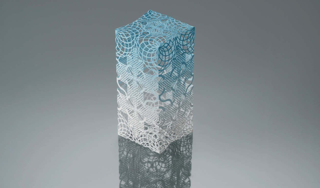 The common understanding of the characteristics of paper as material speaks to a precious fragility identified in smallness and lightness— generating an experience of slowness built up by delicate structures and visual textures. Ashley’s paper sculptures find meaning through transference and allude to the soft and fragile. Appealing through the use of symmetry and patterns, the works are made through rigorous repetition and aim to create monumentality despite their scale.