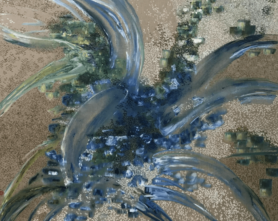 Insight (洞察力) is an artwork inspired by the ability to use machine learning to analyse large volumes of data and to turn it into actionable insights. Seok Kee fuses traditional ink painting styles with modern Western art mediums, applying Chinese ink brush techniques in her use of acrylic paint and canvas. The result is a painting that is rooted in tradition while inviting viewers to think about a future dominated by technology. It also calls upon viewers to ponder the role of technology in predicting and solving unprecedented crises such as the COVID-19 pandemic.