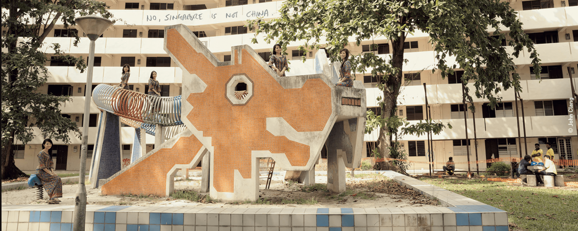 John Clang’s The Land of My Heart focuses on the iconic image of the Singapore Girl, and thinks about their lives rushing back and forth from airports, only allowed leisure once they change out of their sarong kebaya. With his series, he places them in various locales in Singapore while in their signature uniform, almost like tourists in their own homes, while pondering the Singapore identity as our country rapidly changes before our very eyes.