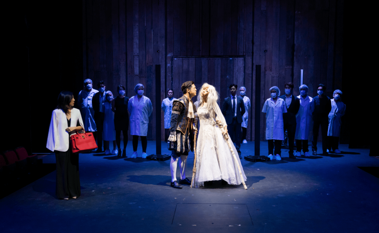 This then, makes it an ideal piece to test Wild Rice’s latest batch of Young & Wild trainees, and all that they’ve learnt over the course of the year-long course. Helmed by Edith Podesta, the demanding script sets a high bar for the 16-member cast, with the play starting with a campy, over-the-top period drama about the original Candide, to a high tension thriller, to even an imagined sci-fi setting set in the future, where pessimism is completely eliminated. Most of the cast play at least two roles, or characters who undergo complete personality changes, requiring finesse and maturity to fully embody in every scene.