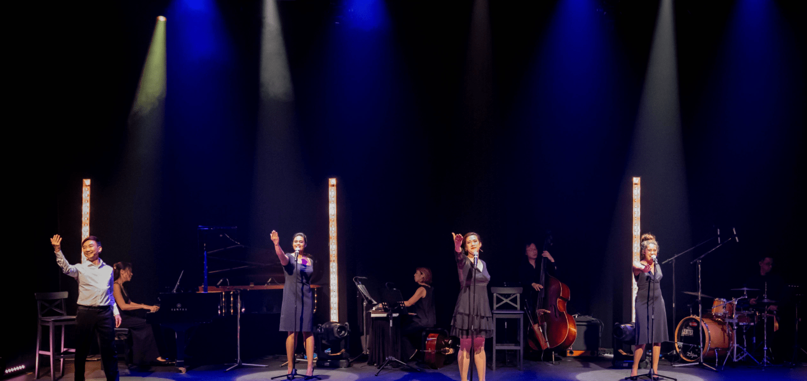 Segueing into ‘Mon Dieu’, Sangeetha takes to the stage and pours her soul into the performance. Stamping her own voice and personality onto this piece, she pushes herself to her limits, almost punishingly so as she considers the cruel nature of time. We reach the performance’s denouement, as the curtains reveal a portrait of Piaf. The singers turn to this portrait, and as a recording of Piaf’s ‘Hymn to Love’ plays, we feel the power of the performance as it recalls all that she’s been through, all her lovers and all the deaths she’s faced. Yet, through it all, she has no regrets, ending off with a final performance from our cast of her signature song of the same name. It seems that there will always be a light at the end of the tunnel keeping us going on in the darkest of days, as life goes on.