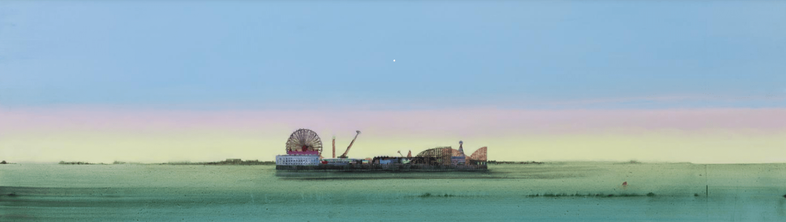 Christina Jansen, director of The Scottish Gallery, comments: “McFadyen paints the exterior world with a cool detachment that carries an emotional punch, and Lost Boat Party perfectly describes his approach – floating through the landscape to find and show the strange enigmatic portion only seen when looking for something else. The painting Lost Boat Party is a monumental work, depicting a seaside funfair which appears to have detached itself from the land and is slowly drifting out to sea. The metaphor for the human condition is unavoidable, and many of the paintings in the exhibition describe the sea with all its implications of threat and indifference, as well as painterly possibility.”