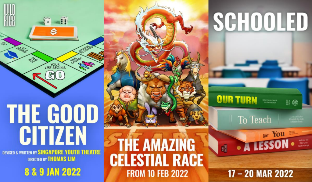 Ushering in a better year in theatre, Wild Rice has announced the first three shows of 2022 – The Good Citizen (8th to 9th January 2022), The Amazing Celestial Race (from 10th February 2022), and Schooled (17th to 20th March 2022) all playing at the Ngee Ann Kongsi Theatre in Funan.