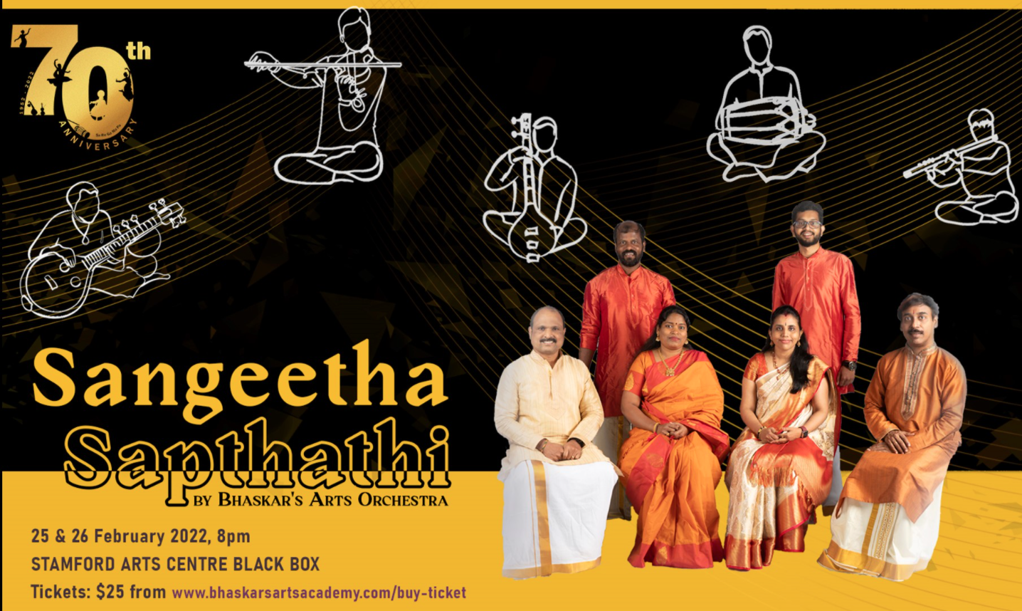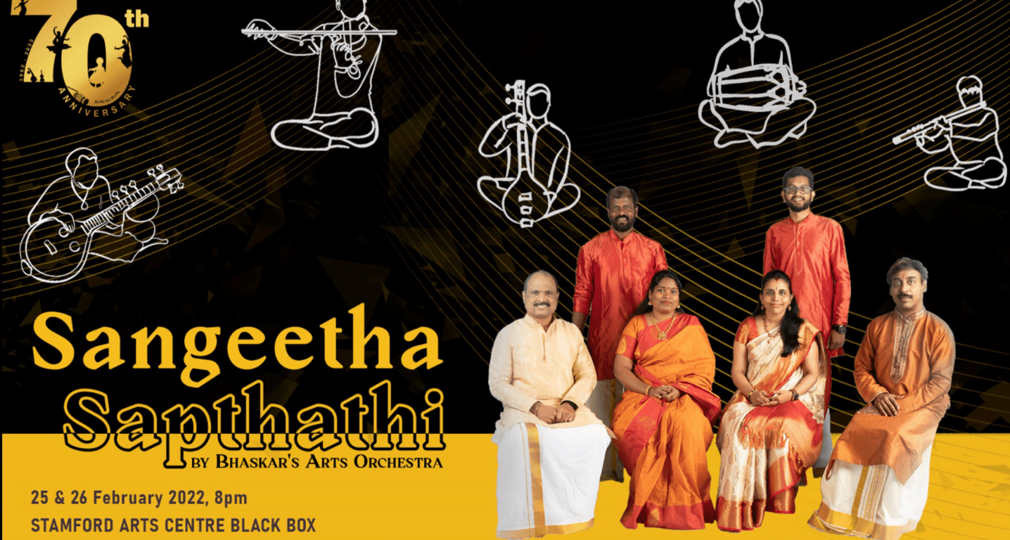 Led by Music Director Dr Ghanavenothan Retnam, Sangeetha Sapthathi is a specially curated set of music pieces that encompasses the Academy’s contribution to the vibrant arts scene in Singapore since its establishment. Each selection is significant in its own way in presenting an important moment in the institution’s journey thus far. Favourites of the founders, the Bhaskars, will also be featured. Sangeetha Sapthathi will be presented by the well-established Bhaskar’s Arts Orchestra.