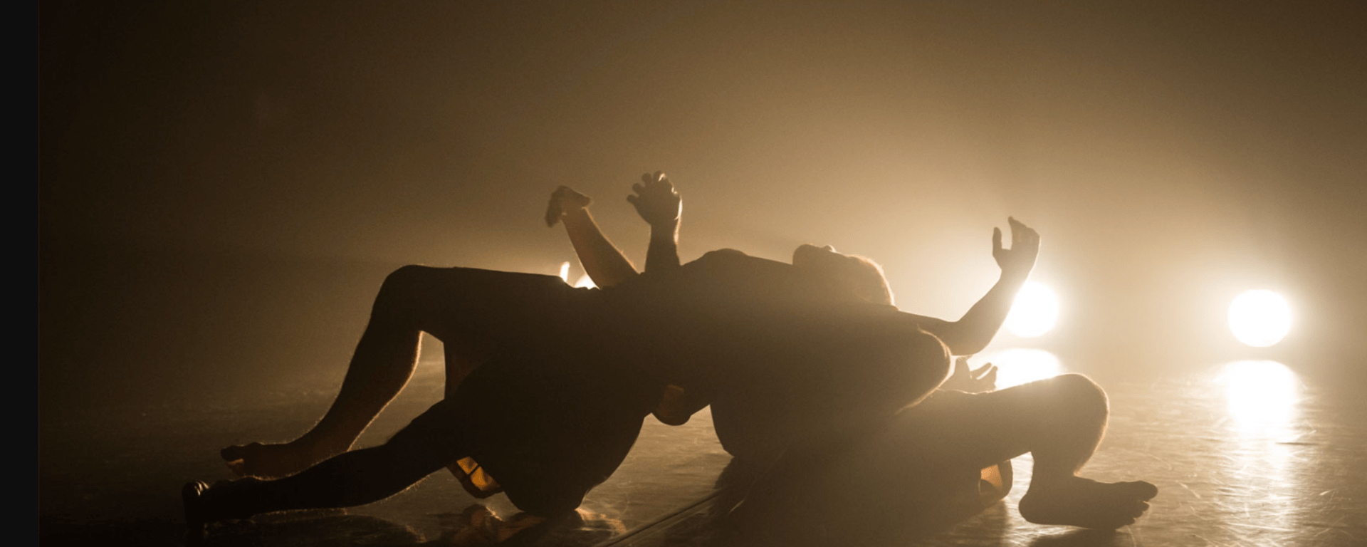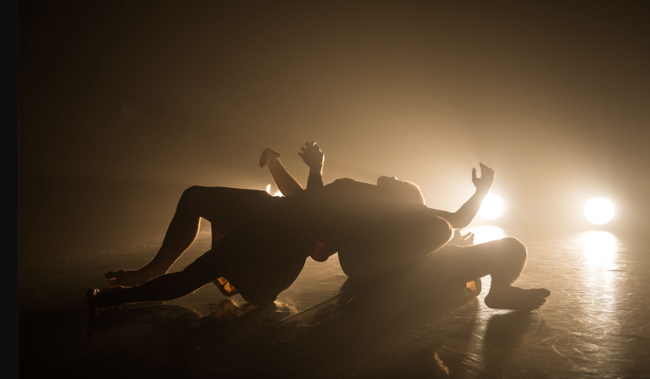 Even though the salt ring has been established, with salt believed to be able to ward off evil and promote purification, the two nonetheless return to scuffle once again, this time to the sound of Nick Cave’s ‘Into My Arms’. Slow and melancholic in its melody, the lyrics speak of the end of a relationship, almost a prayer to watch over a partner in the wake of a break-up. It is in this final scuffle that seems to be the straw that breaks the camel’s back. Too-bright orange lights flashing around the perimeter of the ring, hurting our eyes and adding drama to the conflict, causing them to dart in and out of shadows, and leaving them as darkened silhouettes where we cannot tell one from the other, while strobe lights slow down the action, harsh and hurtful to us as the audience to represent the pain that’s happening onstage. There are so many angles and dimensions from which to see the fight, locked in combat as their faces twist into new expressions. It doesn’t matter who started it – all that matters is finding an end.