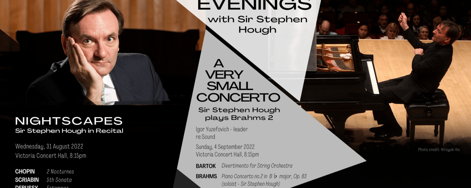Two Evenings with Sir Stephen Hough plays on 31st August and 4th September 2022 Victoria Concert Hall. Tickets available here