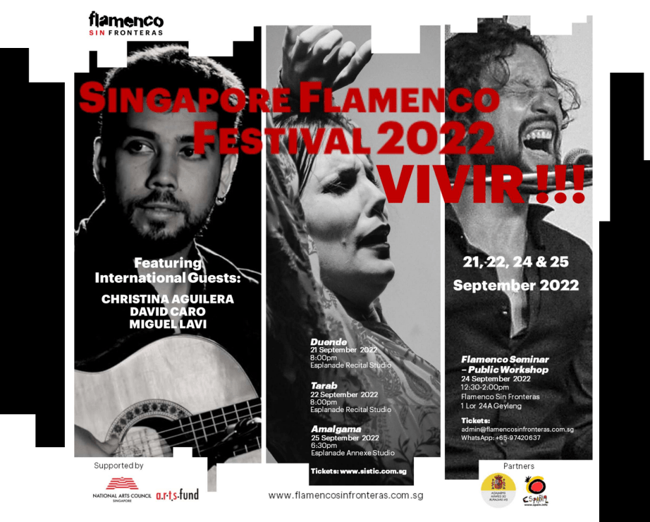 Singapore Flamenco Festival 2022 – VIVIR!!! runs from 21st to 25th September 2022. More information available here