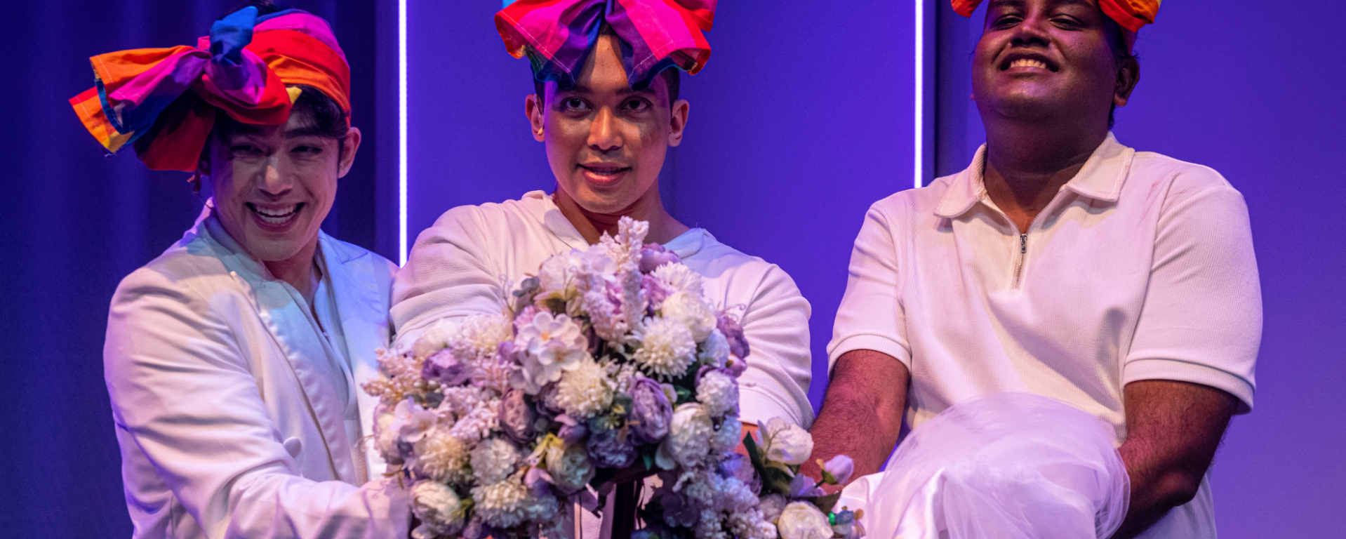 For queer theatremakers Rajkumar Thiagaras, Fadhil Daud and Ryan Ang, that is a conundrum they’ve decided to explore in their new devised work, Never The Bride. Directed by Alvin Tan, the play comprises a series of sketches where the three men explore what marriage means to them, from cultural significance to fantasy sequences, all playing on the idea and emotions that stem from them realising they will never be the bride.