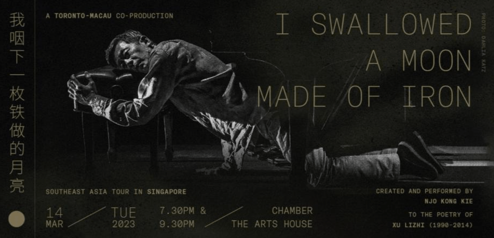 I Swallowed A Moon Made of Iron plays on 14th March 2023, 730pm and 930pm at the Chamber @ The Arts House