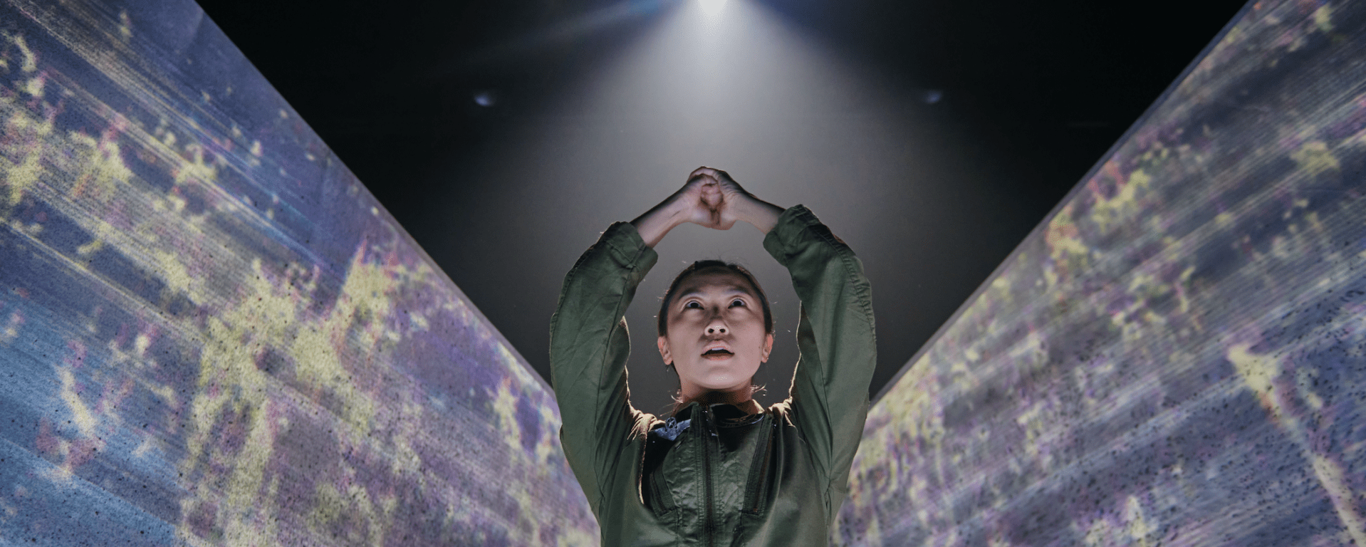 The initial part of the script however, drags from stretching out the pilot’s entire backstory. In performing the role, Shu An takes on a deeper drawl to her voice, alongside a pseudo-American accent. There is the sense that Shu An is always performing rather than embodying the character as she is, even uncomfortable at times. Perhaps this is meant to represent how the pilot herself feels compelled to behave more masculine to fit in with her male colleagues, but you never really feel connected to what feels more a caricature than a fully fleshed out being. Even the times when she tries to assert power, where she describes the euphoria of sex, seem more hollow than enjoyed, and especially when she shows off her more vulnerable sides, it sometimes feels like she sheds the guise of the character altogether and is simply Shu An, the actress, being herself onstage.