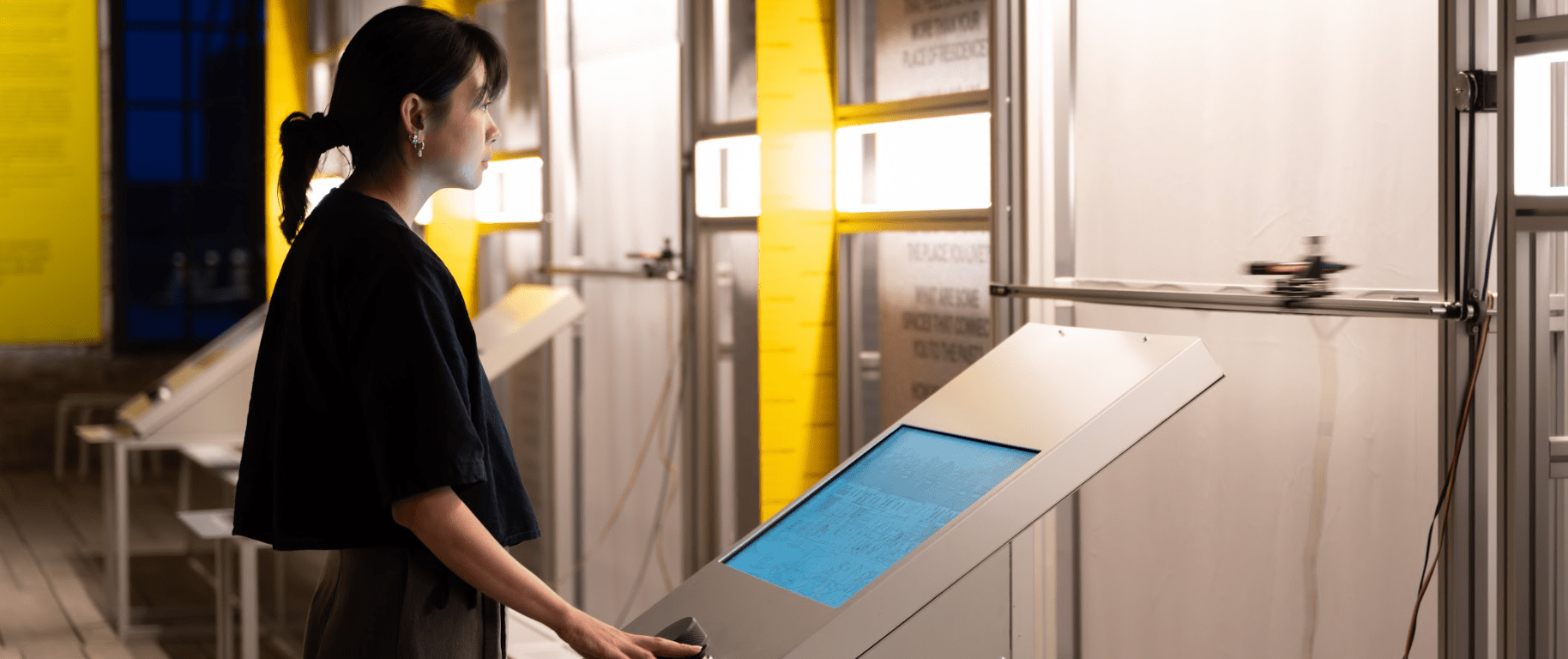 Navigating through a spectrum of artistic renders, visitors will pinpoint the critical balance of qualities to evoke their desired habitat, weighing their preferences and registering these values at the Pavilion. These acts of weighing and registering values form the body of the artwork and their choices will be plotted on the large calligraphic scrolls over the six months of the exhibition, creating a dynamic display of the audience’s desires, telling the story of consensus and contradiction over the six months in real-time. Accompanying the machine are exhibits containing over 40 other questions for visitors to learn more about the research and work done by practices, in how they expand the definition of architectural outcomes. In particular, their work in measuring intangibles while designing for topics such as dementia and neurodiversity, rewilding, biodiversity, nutrition, and biomimicry ecosystems, all in the hopes of exploring the notion of lovability; as architects design functional and livable spaces, how can buildings and spaces also factor in intangible traits like the attachment and connection people have with these spaces.