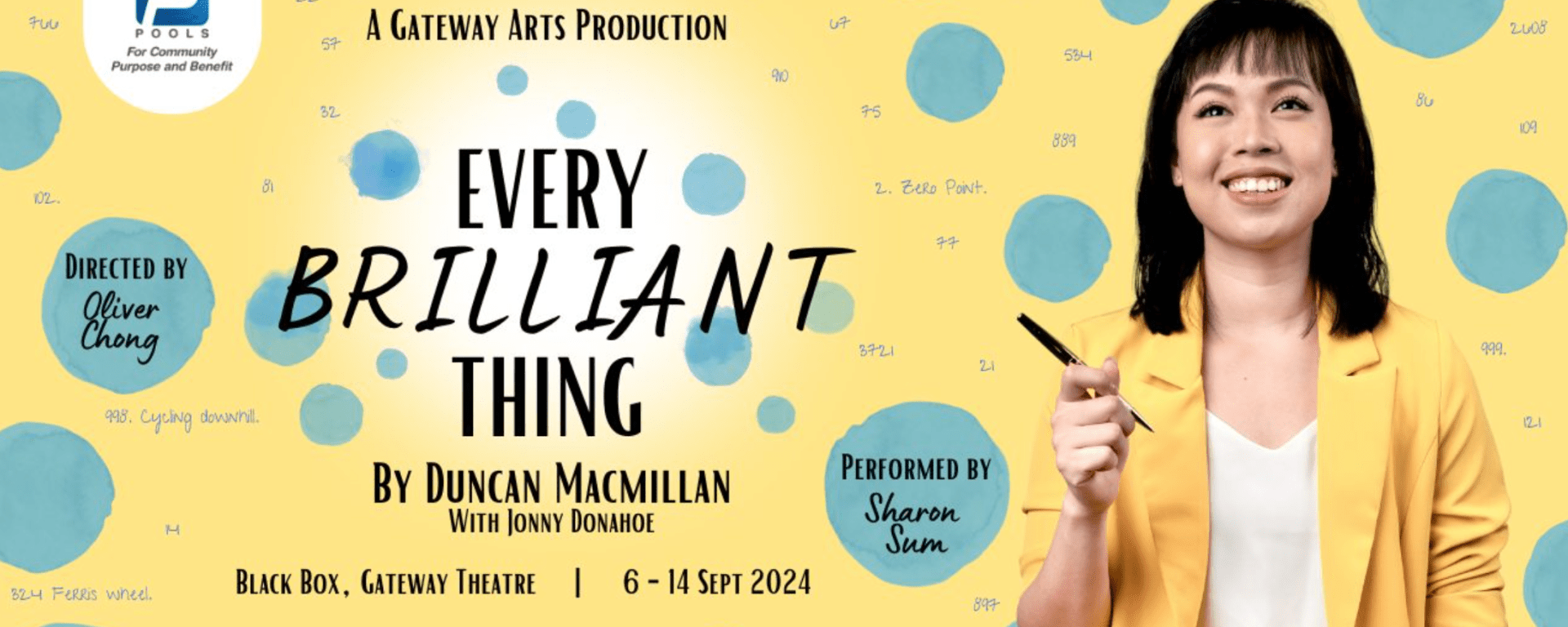 Presented by Singapore Pools and produced by Gateway Arts, a brand-new adaptation by Oliver Chong of Every Brilliant Thing comes to stage this September for Gateway Arts’ third production of their 2024 season.