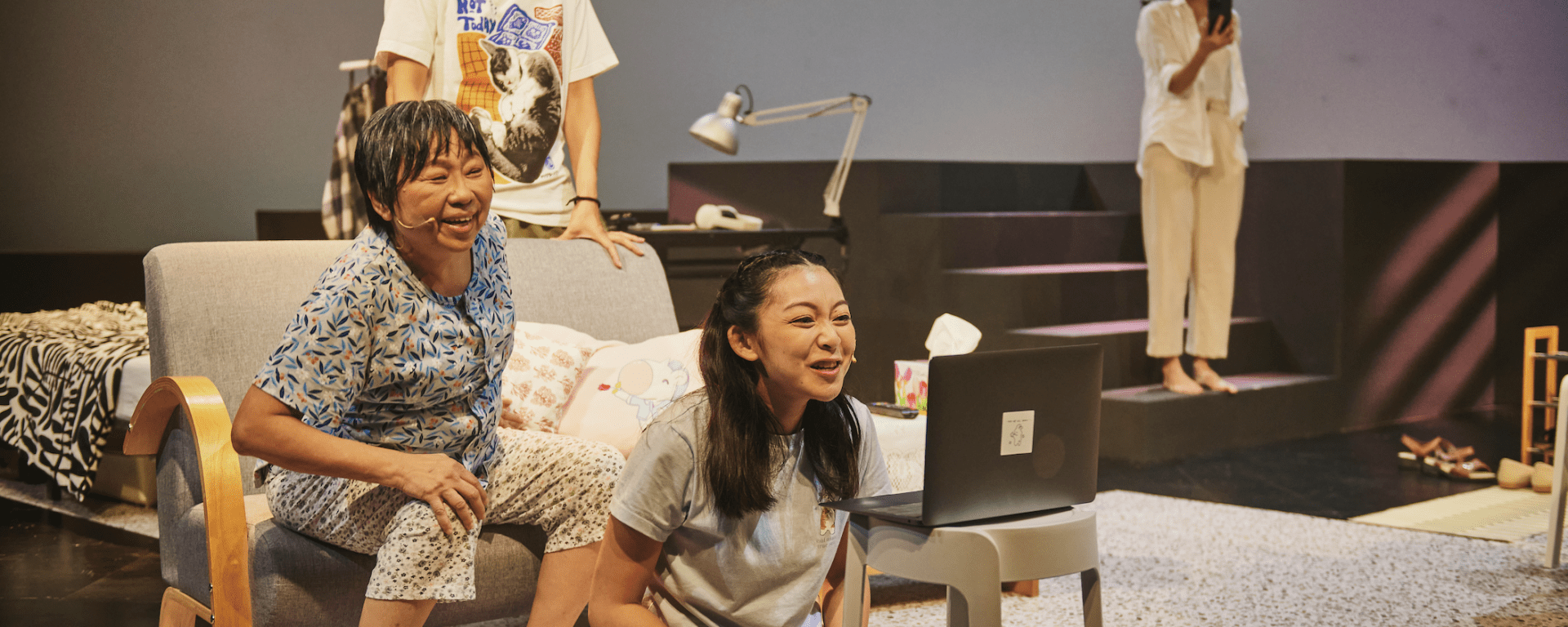 The Necessary Stage (TNS) Associate Artist Deonn Yang understands this complexity all too well, and taking on the dual role of both director and playwright, presents these themes with poignancy and heart in White, All White. First presented as a dramatised reading during Playwrights’ Cove in 2022, White, All White follows a family of women living under one roof, led by single mother Shi Hui (Koh Wan Ching) who works an administrative job in a school by day, and is essentially the matriarch of the household. Her mother (Goh Guat Kian) is a widower, but cheery, spending most of her days at home with a smile on her face, while her teenage daughter Genevieve (Coco Wang) studies film at a polytechnic, working part-time at an ice cream shop for extra cash.