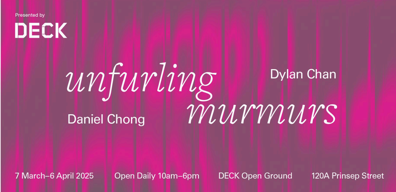 unfurling murmurs runs from 7th March to 6th April 2025 at DECK Open Ground, 120A Prinsep Street, Singapore 187937. (Nearest Station: Rochor Station – Downtown Line). More information available here