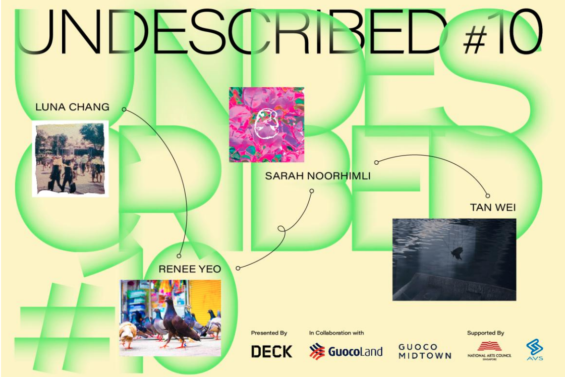 Running from 25 April to 17 August 2025, Undescribed #10 is led by renowned artist Robert Zhao Renhui and Director of DECK, Gwen Lee, and will feature compelling works by four emerging artists – Luna Chang, Sarah Noorhimli, Renee Yeo and Tan Wei.