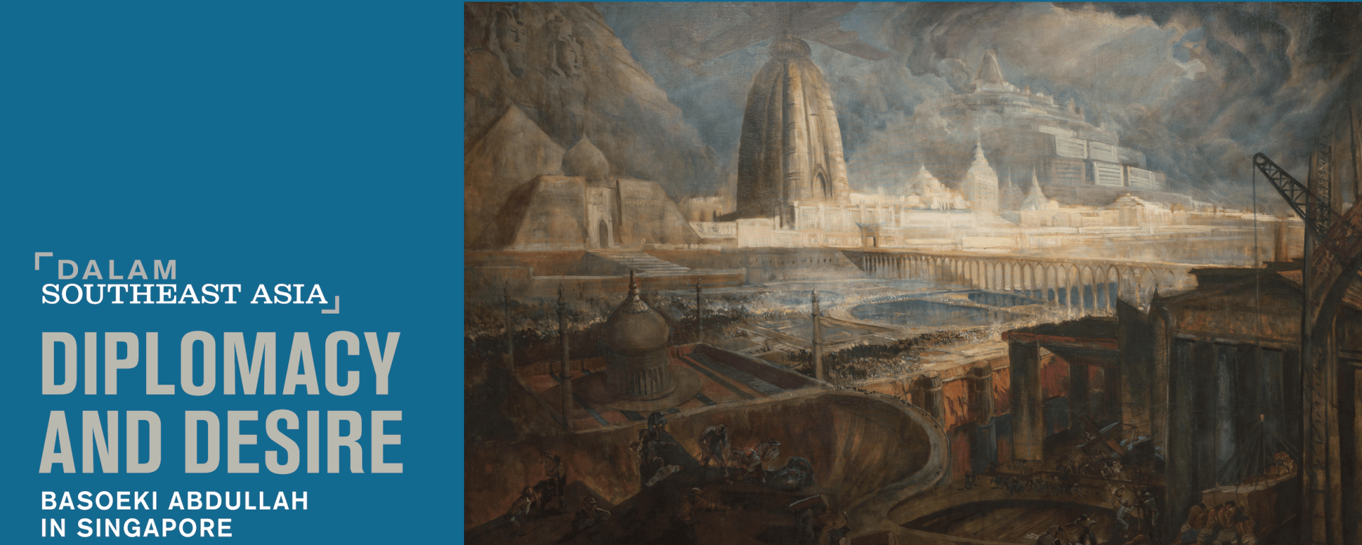 Focusing on Basoeki’s relationship with Singapore, where he lived between 1958 and 1960, Diplomacy and Desire centres on two significant artworks he gifted to the country. This period coincided with Singapore’s transition toward self-governance in 1959. Labour, which spans almost three metres long, was one of two gifts that Basoeki gave to Singapore. The artist gifted it to the City Council of Singapore in 1959, after Singapore achieved self-governance that year. When the artist returned to Singapore in 1989 to seek out this painting, he claimed that the painting represented the future of Singapore. In fact, the structures in the painting reference key historic sites, such as the temples for Ramesses II and Queen Nefertari at Abu Simbel, which had to be relocated in 1964 as part of Nassar’s ambitious Aswan Dam project (1970). This relocation project, as well as the monuments that populate the background of the image, which recall Borobudur and sikhara, may speak to how Basoeki Abdullah was inspired by the possibilities for allied progress between “coloured nations” that were shared at the seminal Bandung Conference of 1955.