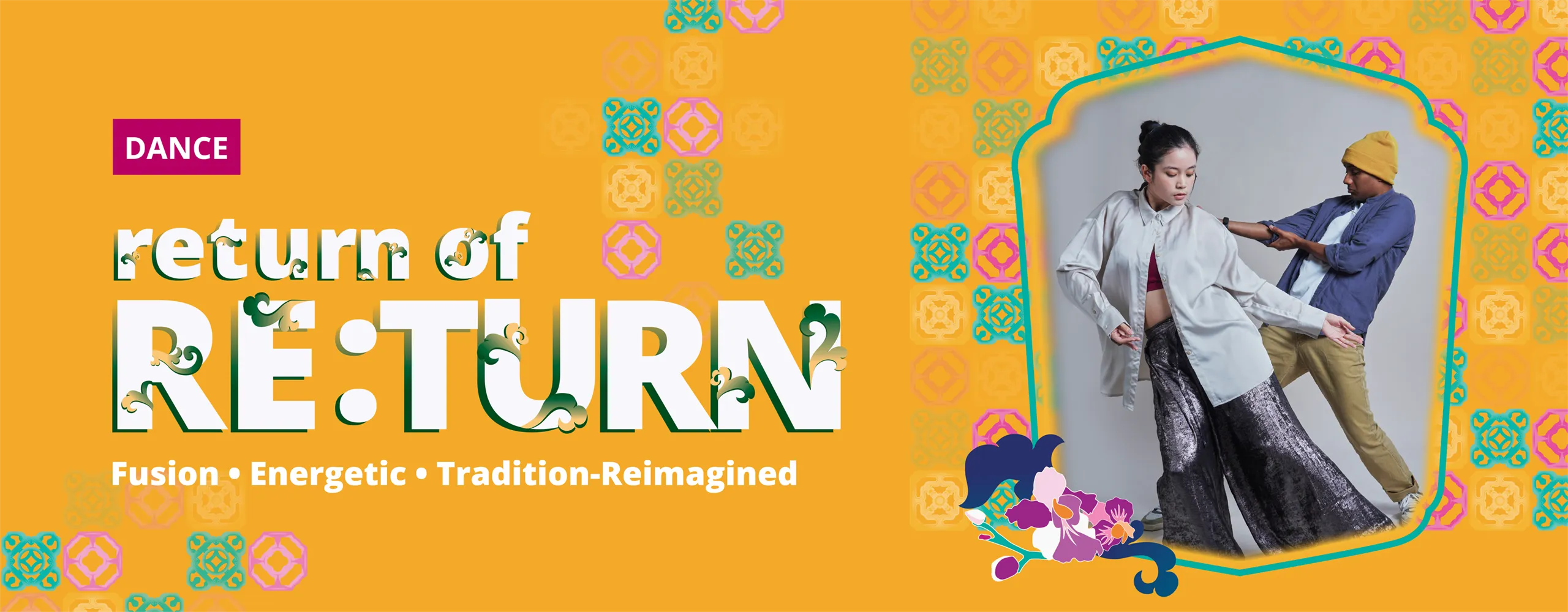 return of RE:TURN is a high energy dance production that explores the disappearing grammar of traditional Malay, Indian and Chinese dance finding its way to influence, evolve and turn dance genres like hip-hop into fresh and exciting possibilities. Featuring the largest dance club, this production celebrates SMU Eurhythmix marking its 25th anniversary alongside SMU25 and SG60.