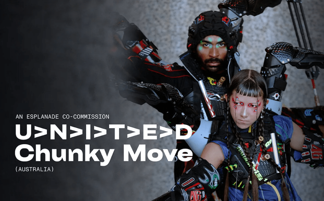 When audiences step into U>N>I>T>E>D, the latest work from Melbourne-based company Chunky Move, they can expect to enter an entirely different world and an unfamiliar dimension. Think of a machine-mystical landscape where human bodies become mythic creatures, animatronic forms pulse with uncanny life, and the air vibrates with the furious ritual of Balinese noise-duo Gabber Modus Operandi. It’s dance, but something entirely different from how you know it.
