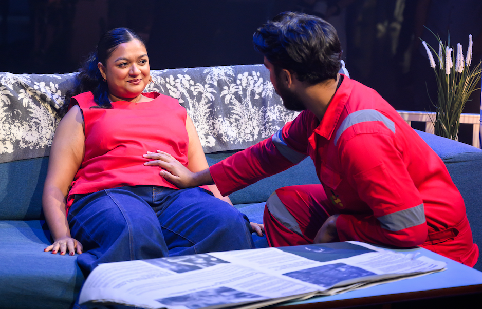 In terms of the performances, Fahim Murshed, as Kamil, and Masturah Oli, as his wife, share strong onstage chemistry, and we believe their relationship – sweet and caring, a little silly when they lean into the humour that puts a smile on our face, and naturally, the sense of fear and worry when they encounter unexpected problems in their grand family plans. Director Krish has done well to transition between realism and surrealism, alongside the fantastic use of lighting and soundscape, where the occasional segue into more dream-like, almost hypnotic segments where they seem to speak from a trance-like state is unnerving, and helps us to believe that we’re in Kamil’s subconscious.