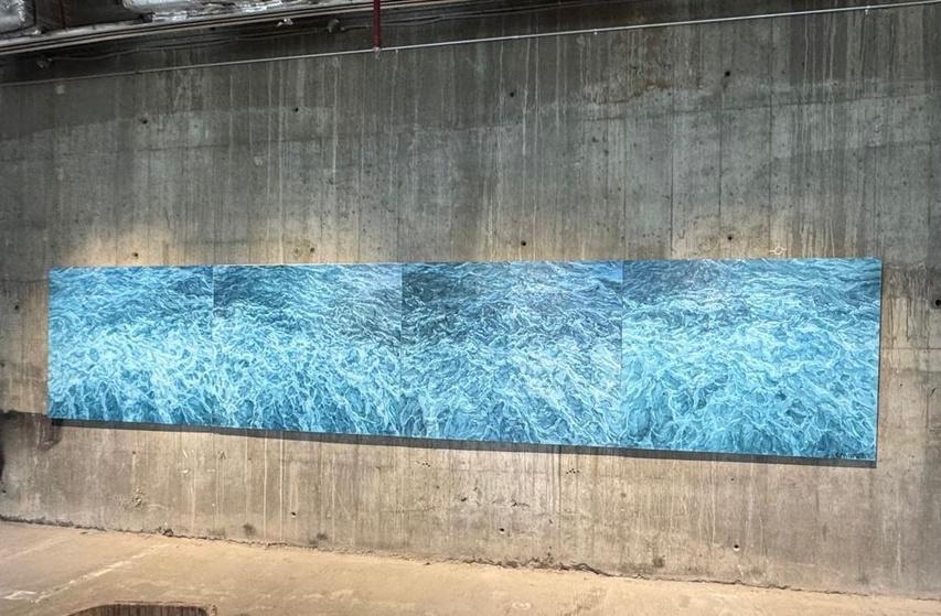 Painting provides another register of reflection. Elaine Navas’ sweeping seascapes capture the ocean mid-motion, thick with paint and time. Inspired by photographs yet resisting stillness, her works suggest movement frozen only momentarily, a reminder that nothing, even what looks calm, is ever truly still.