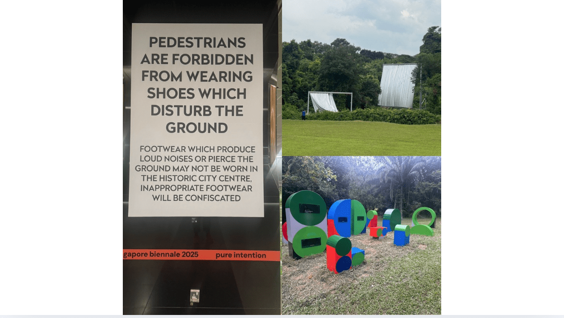 Art doesn’t always ask for your full attention. Sometimes, it waits patiently, be it by a footpath, at a neighbourhood field, or quietly above an MRT escalator, ready to meet you wherever you are. With the launch of three new site-responsive works, Singapore Biennale 2025: pure intention continues to blur the boundary between art and the everyday, inviting viewers to encounter creativity not in white cubes, but while walking, waiting, resting, and returning.