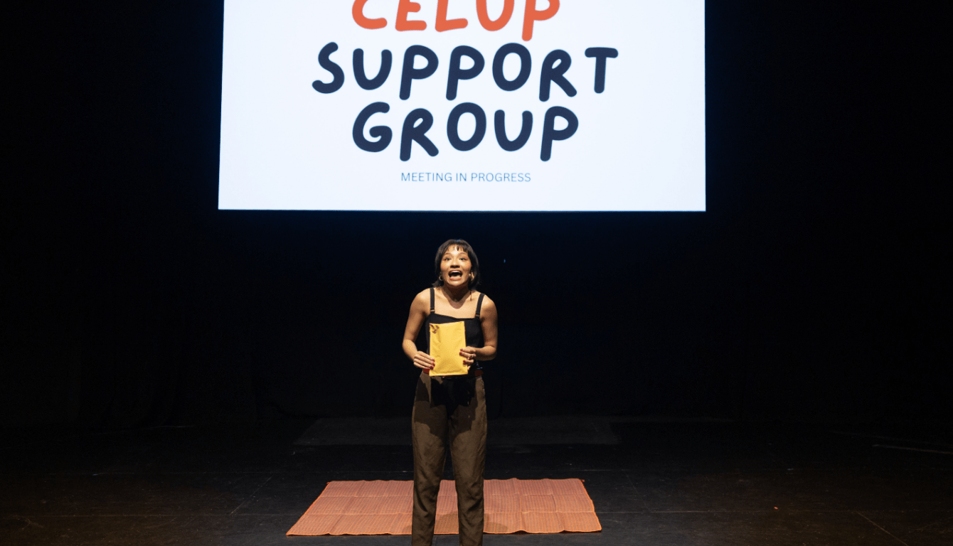 Onscreen, a large sign welcomes us to the “Celup Support Group.” The concept is cute, but underdeveloped. It functions largely as a support group for Sofie herself rather than as a context for broader engagement, despite the fact that the audience likely includes self-identified celup. There’s potential for deeper exploration here, particularly in examining why belonging and cultural identity matter, but the play never quite does a deep dive into it, or dares to interrogate audience members on the more problematic aspects of being celup. Playfully, Sofie also references ministries and government support for celup individuals, lightly satirical yet never contextualised or questioned, hinting perhaps at the authorities’ own narrow views of ethnicity and race.