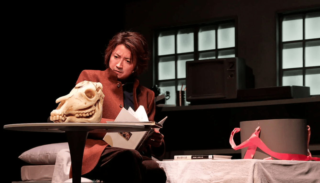 At the centre of this shifting landscape is Tatsuya Fujiwara, whose portrayal of Watashi is unexpectedly disarming. Known for intensity in his screen roles, he instead leans into humour and awkwardness, becoming a more bumbling figure swept up in forces beyond his control. This makes his eventual realisation, that his time is finite, that his world is slipping away, all the more affecting. Around him, the cast embraces the production’s heightened tone: Miu Tomita brings sharp comedic timing to the irrepressible Woman in Pink, matched in eccentricity by Narushi Ikeda’s delightfully unhinged Doctor. Haru Fujita and Shinya Matsuda inject bursts of physical comedy and menace as the Small and Big Guys, their destructive rampage through Watashi’s apartment a moment of chaotic theatrical pleasure. In contrast, Ryunosuke Shimamura’s Boku offers a gentler, more introspective presence, grounding the abstract world of the Town even as it resists emotional clarity in all its mystery.