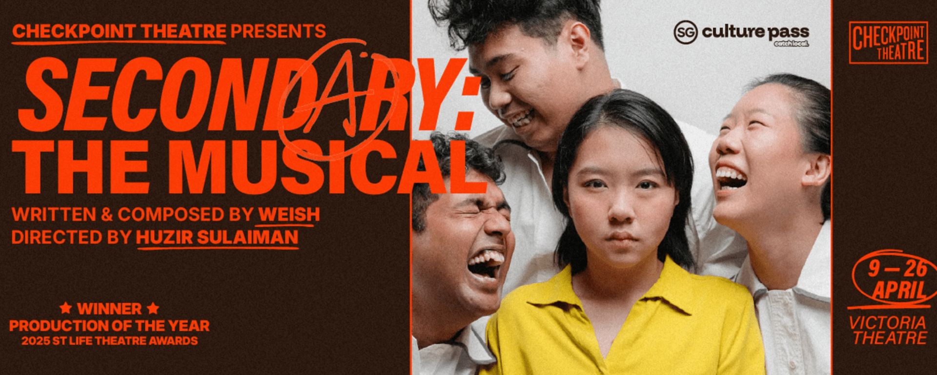Secondary: The Musical plays from 9th to 26th April 2026 at Victoria Theatre. It is sold out. More information on Checkpoint Theatre’s upcoming season here