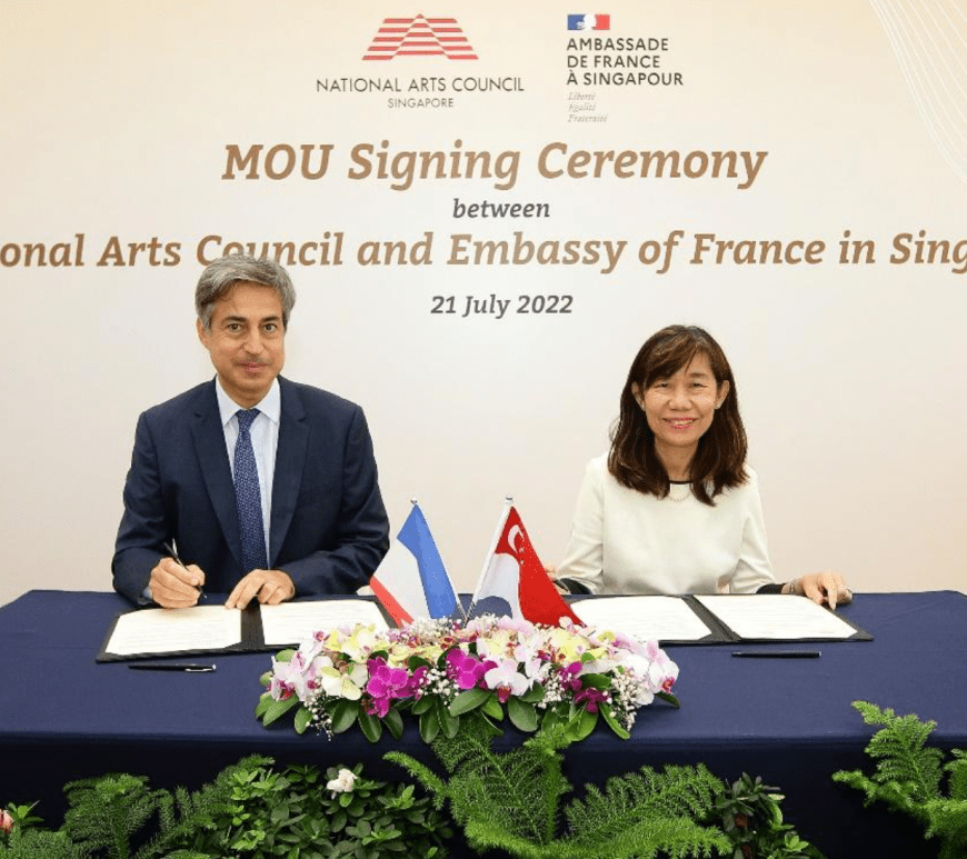 The Embassy of France in Singapore and the National Arts Council, Singapore (NAC) signed a Memorandum of Understanding (MOU) today, committing to support the creation of a bilateral Artist-in-Residency Programme by arts and culture institutions over the next five years, in the fields of visual, literary and performing arts. This is testament to the strong cultural cooperation and commitment from the two countries to support … Continue reading Embassy of France and NAC sign Memorandum of Understanding to develop a Bilateral Artist-in-Residency Programme