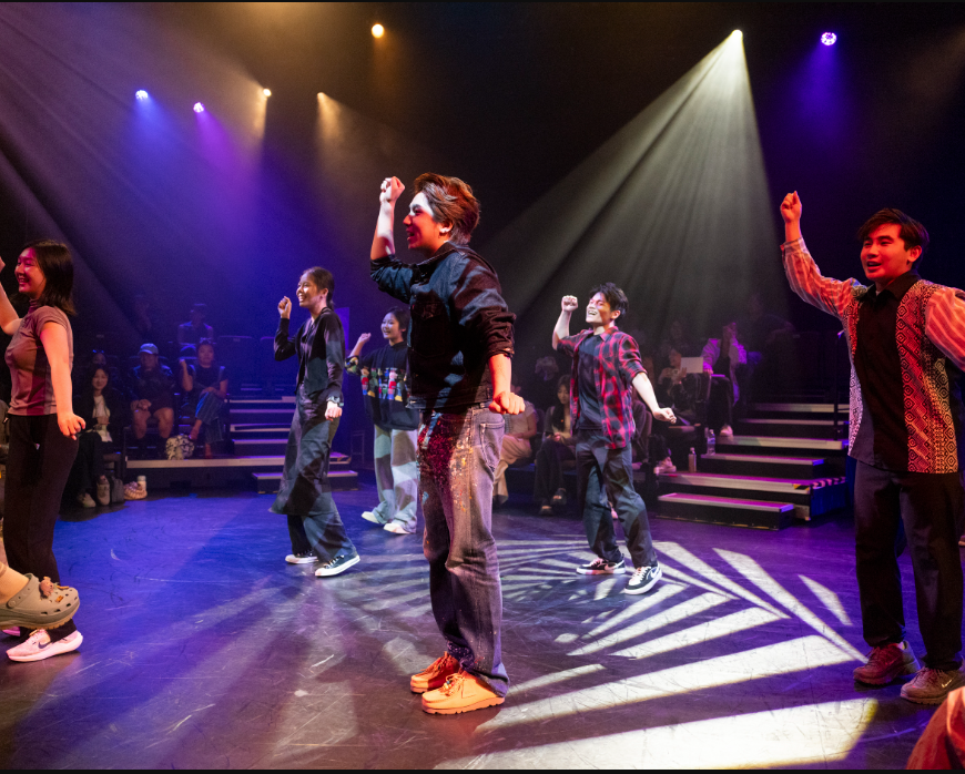 Modern love is chaos, but somewhere in the mess, we still find connection. What is love? The question hangs, rhetorical, almost mocking, over the opening moments of Falling Falling Falling Falling, as the young ensemble strides down a catwalk-like runway, phones up, posing for selfies as if this were the “catwalk of fame.” It’s a clever visual choice by director Daniel Jenkins, immediately situating us … Continue reading Review: Falling Falling Falling Falling by SRT’s The Young Company